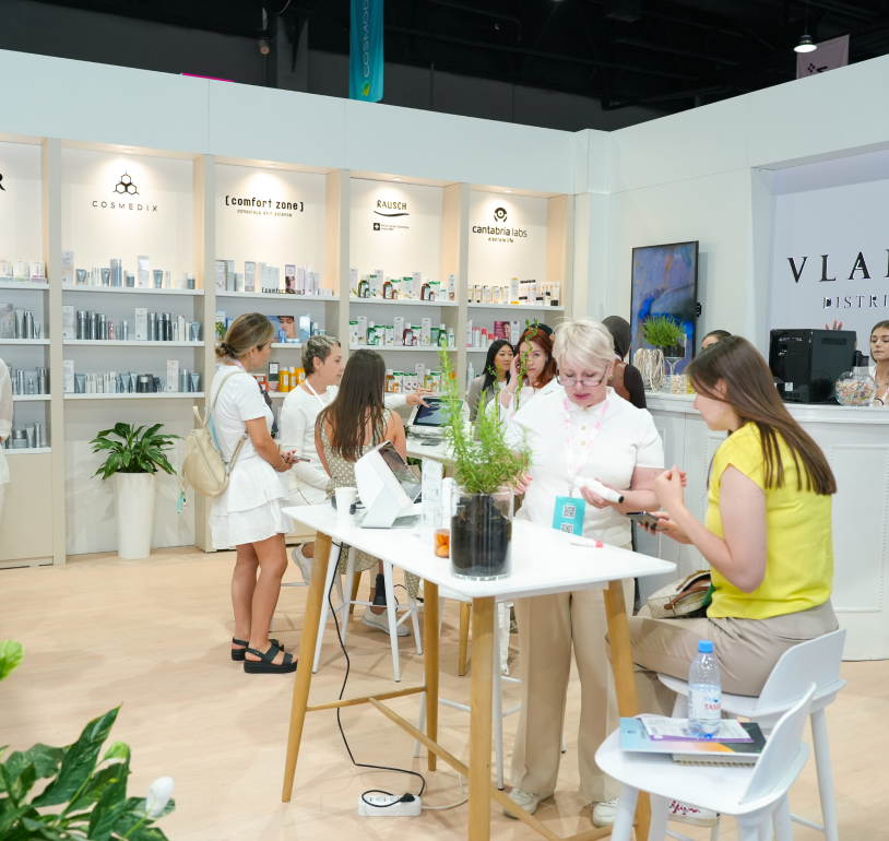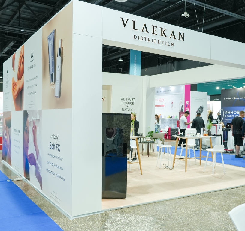 На стенде VLAEKAN были представлены профессиональные бренды и решения для пре- и постпроцедурного ухода: BABOR, Cosmedix, Comfort Zone, Cantabria Labs, RAUSCH.